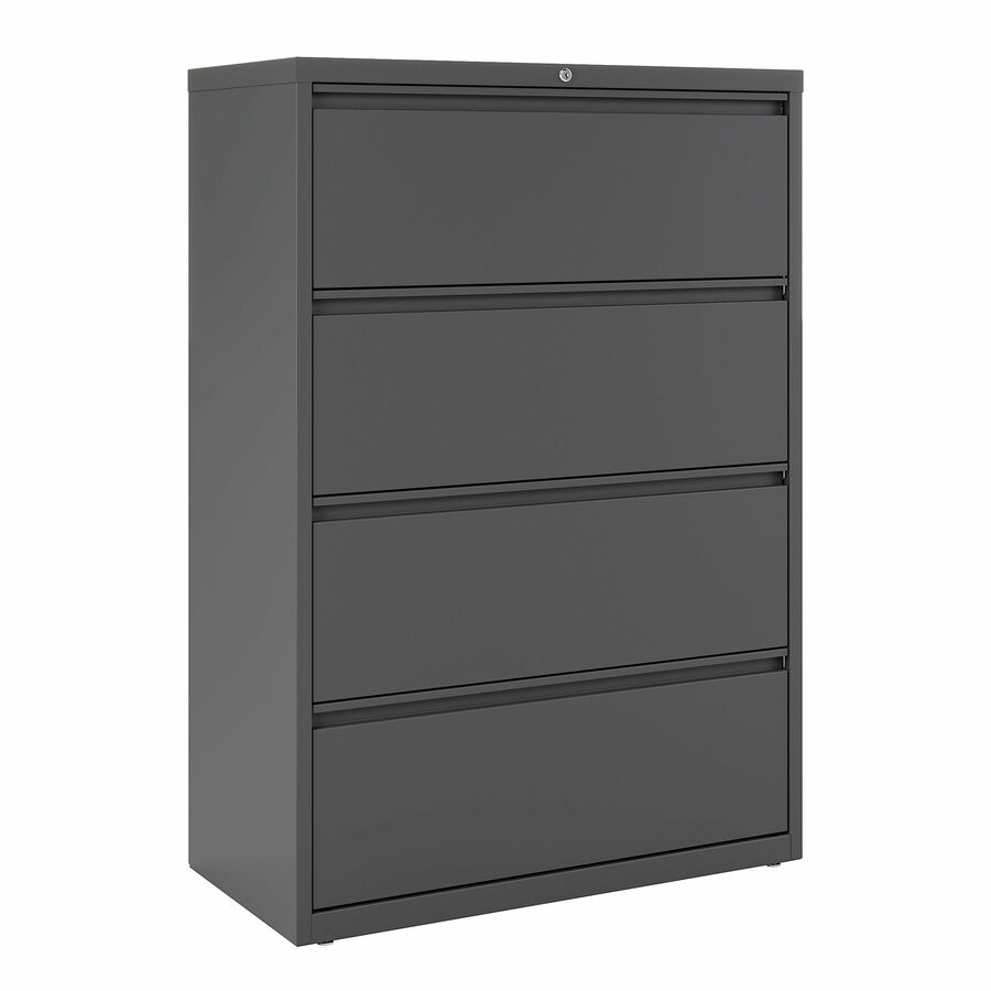 36" Width x 18.6" Depth x 52.5" Height - 4 x Drawer(s) for File - Legal, Letter - Lateral - Ball-bearing Suspension, Lockable, Full Drawer Extension, Key Lock, Leveler, Hanging Rail - Charcoal - Steel - Recycled