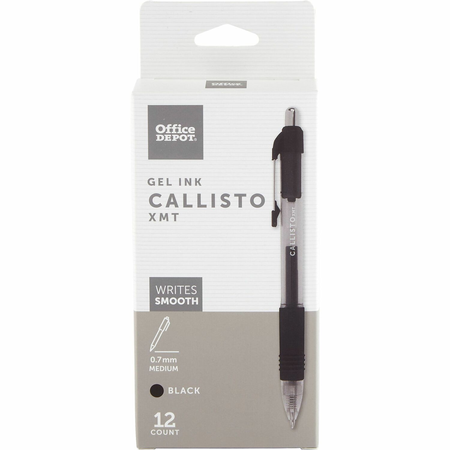 Office Depot® Brand Callisto Retractable Gel Ink Pens, Medium Point, 0.7 mm, Transparent Black Barrel, Black Ink, Pack Of 12 Pens