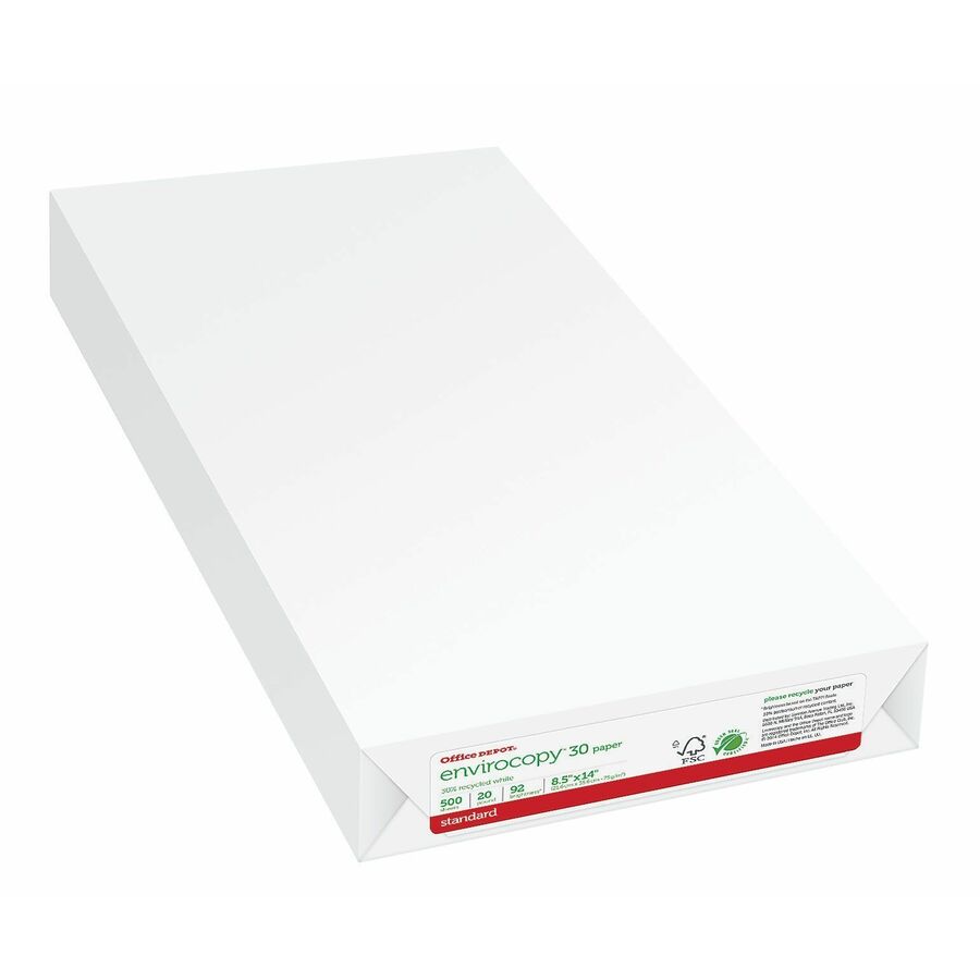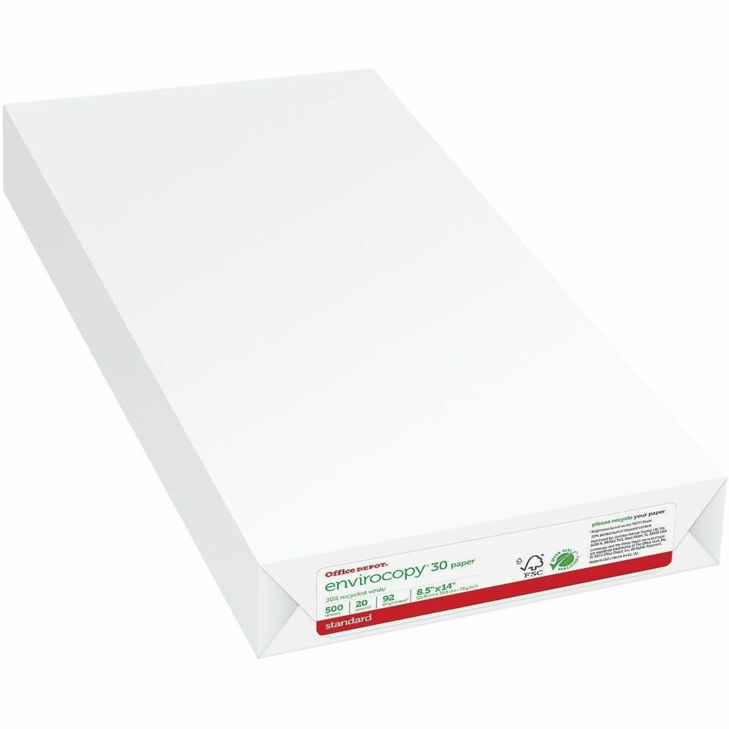 - Office Depot brand EnviroCopy 30 paper is legal size, FSC-certified with 500 sheets.