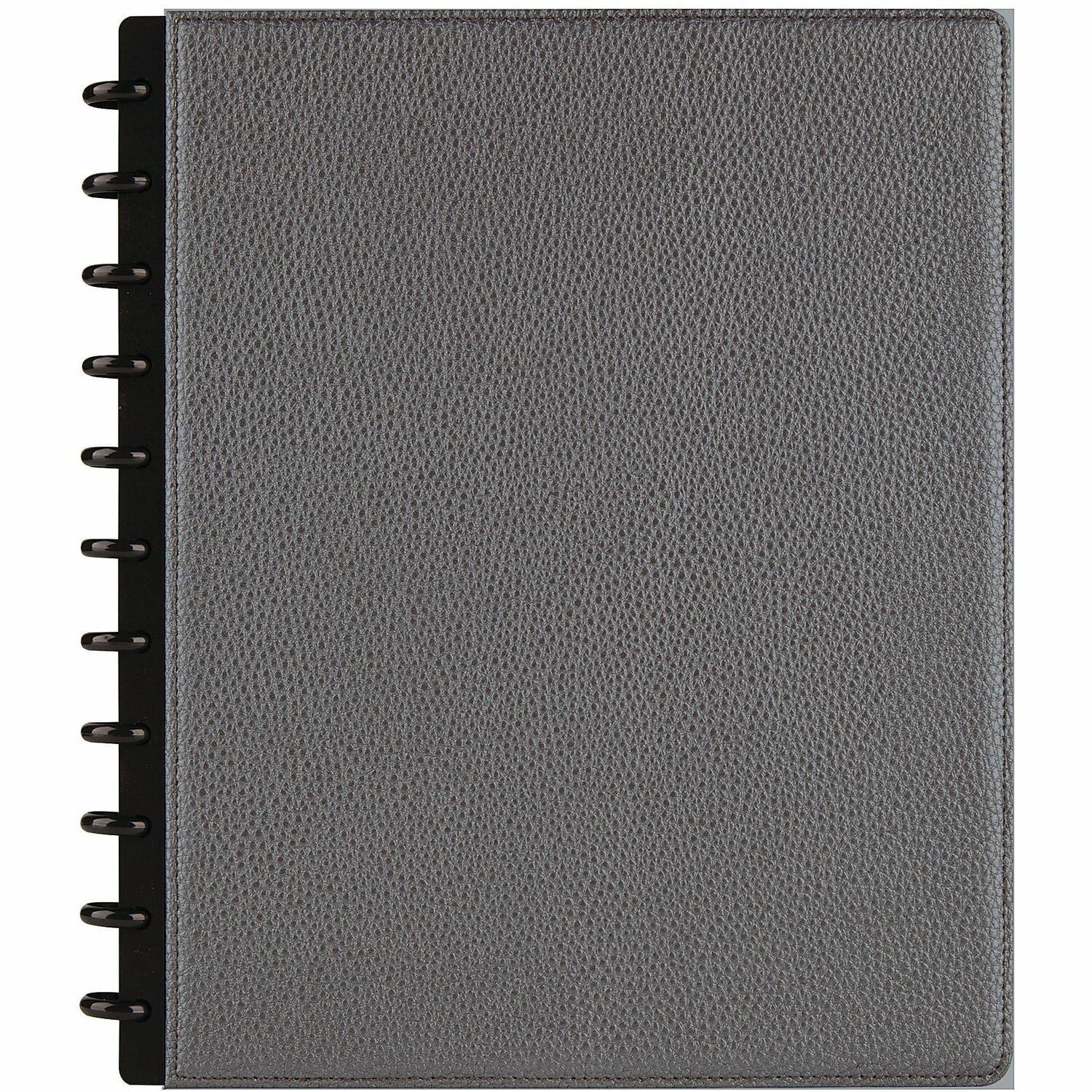 TUL® Discbound Notebook With Pebbled Leather Cover, Letter Size, Narrow Ruled, 60 Sheets, Gunmetal