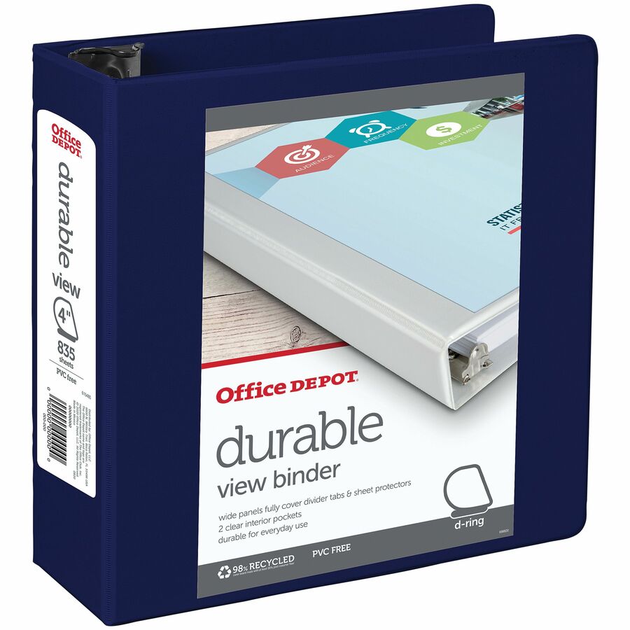 When you need to keep all of your papers together and organized, opt for a large Office Depot Brand durable view D-ring binder. With the ability to store all papers for a particular subject in one place, you'll find yourself staying more organized and getting more great work done with heavy-duty binders.