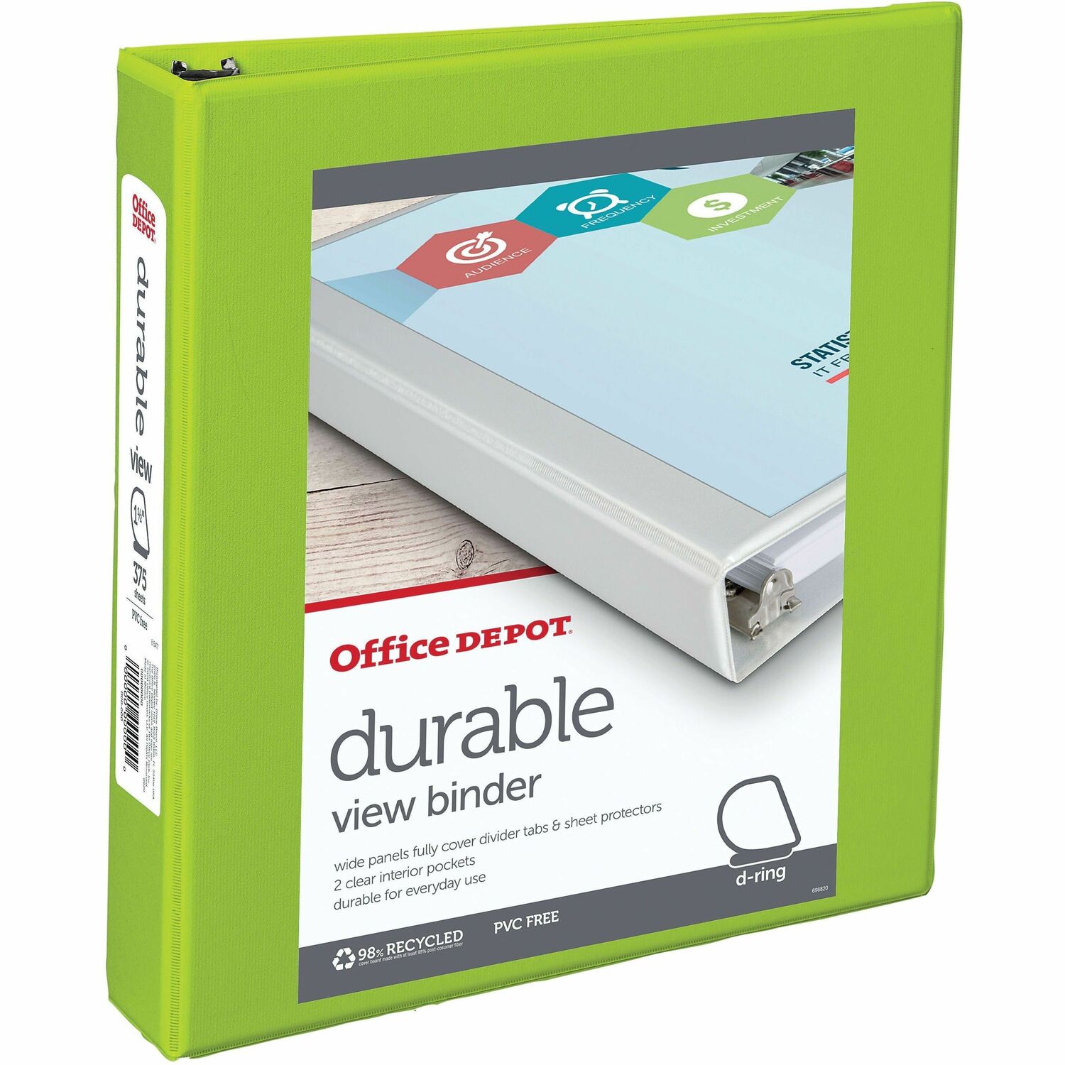 When you need to keep all of your papers together and organized, opt for a large Office Depot Brand durable view D-ring binder. With the ability to store all papers for a particular subject in one place, you'll find yourself staying more organized and getting more great work done with heavy-duty binders.