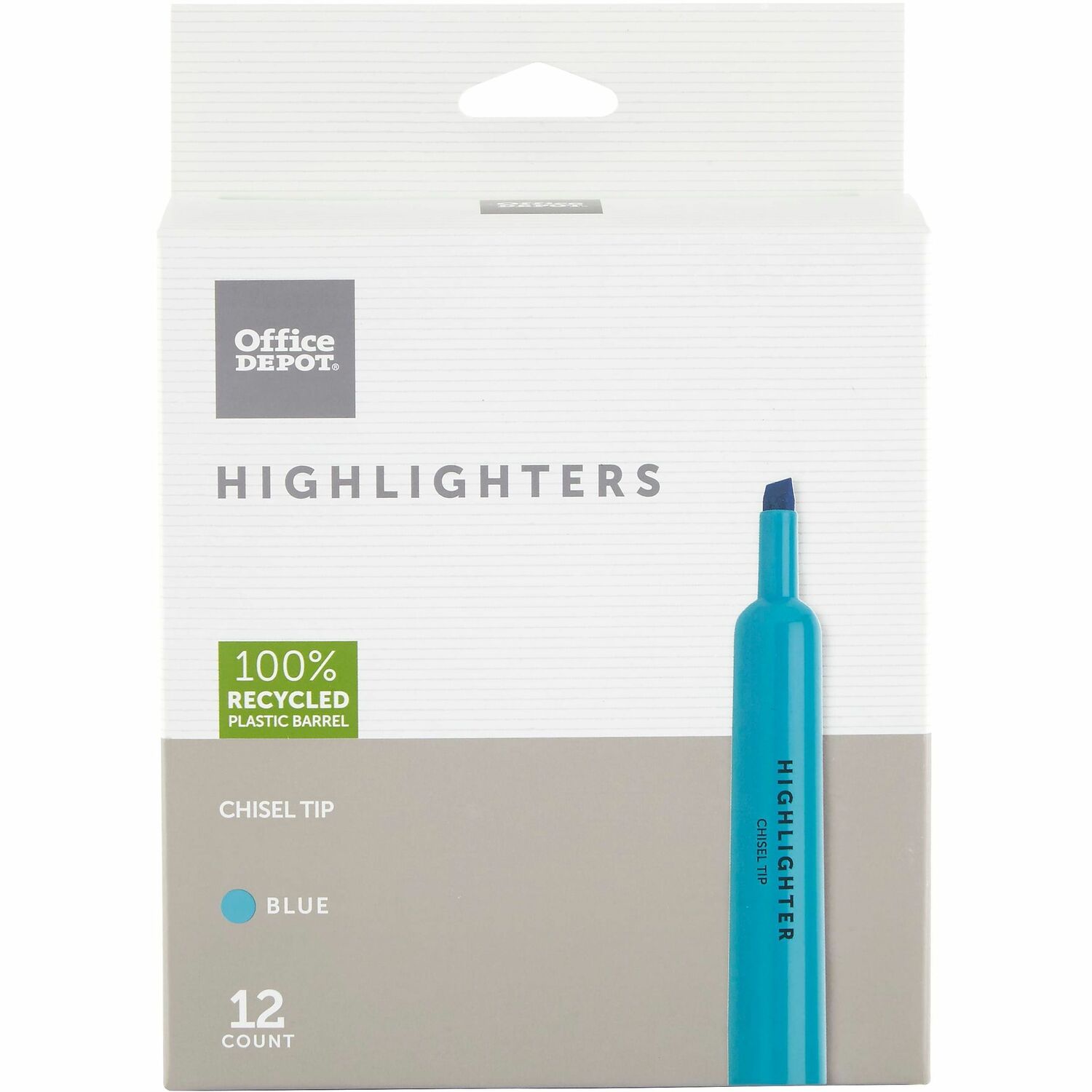 Office Depot® Brand Chisel-Tip Highlighter, 100% Recycled Plastic Barrel, Fluorescent Blue, Pack Of 12