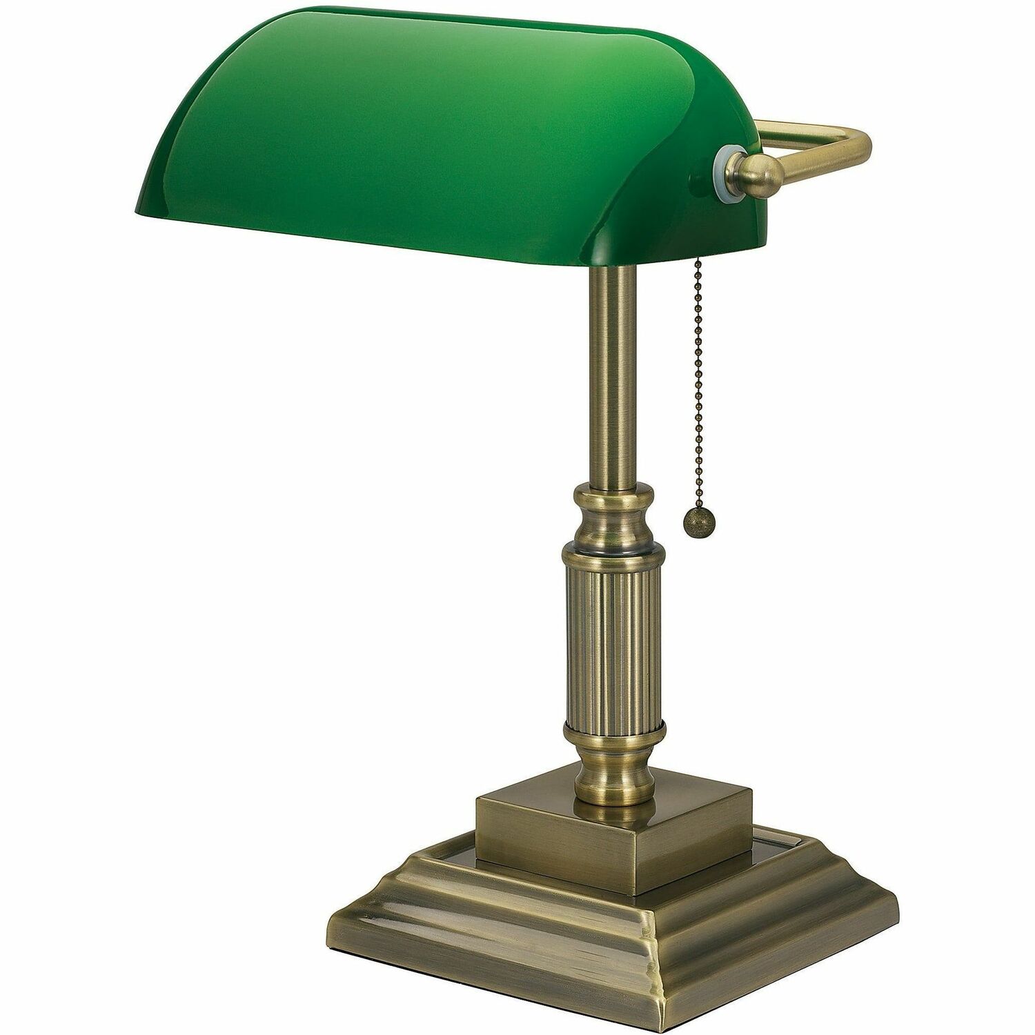 Illuminate your workspace in classic style with this Realspace traditional banker's lamp. The 800 lumen, 10-watt LED bulb delivers energy-efficient lighting, and the pull-chain mechanism lets you turn it on and off easily. This Realspace traditional banker's lamp features a 5-foot cord for positioning flexibility, and the steel base construction in an antique brass finish offers longevity and a vintage-style look to lend upscale appeal to your desk.